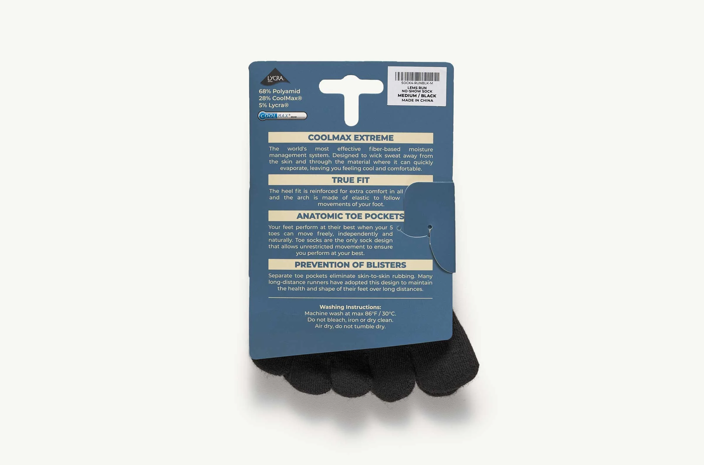 Toesocks are designed to separate your toes, and this special fiber technology features a sock with an anti-friction membrane that is lightweight, sweat-wicking and breathable. This special design promotes healthy blood circulation and alleviates skin-to-skin contact between toes to prevent blisters.