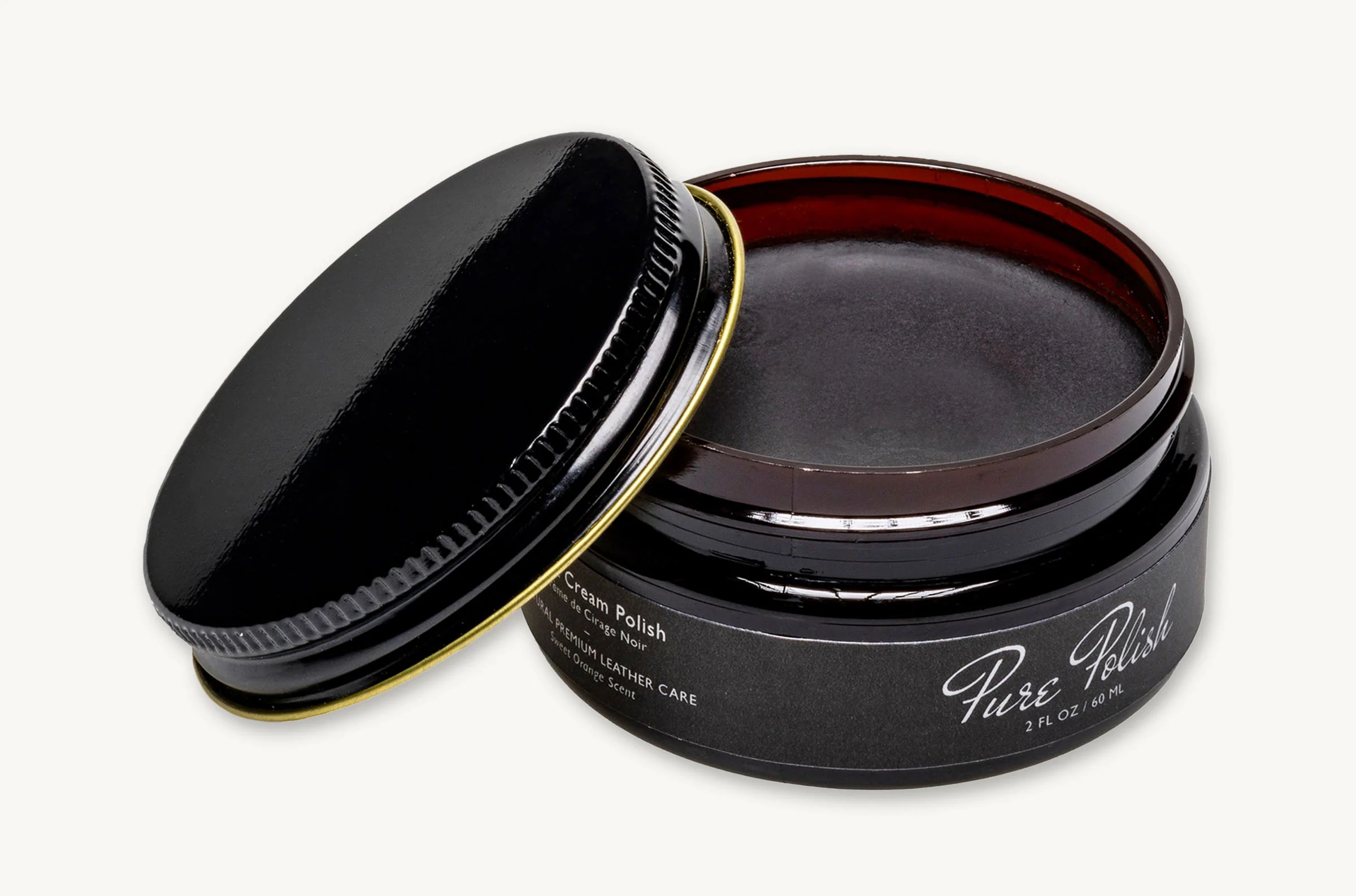 Single two-ounce (2oz) amber jar of Pure Polish Cream Polish. Use for protecting, conditioning, and shining all non-suede/non-patent leather goods. The Color Cream Polish is a pigmented/colored polish.